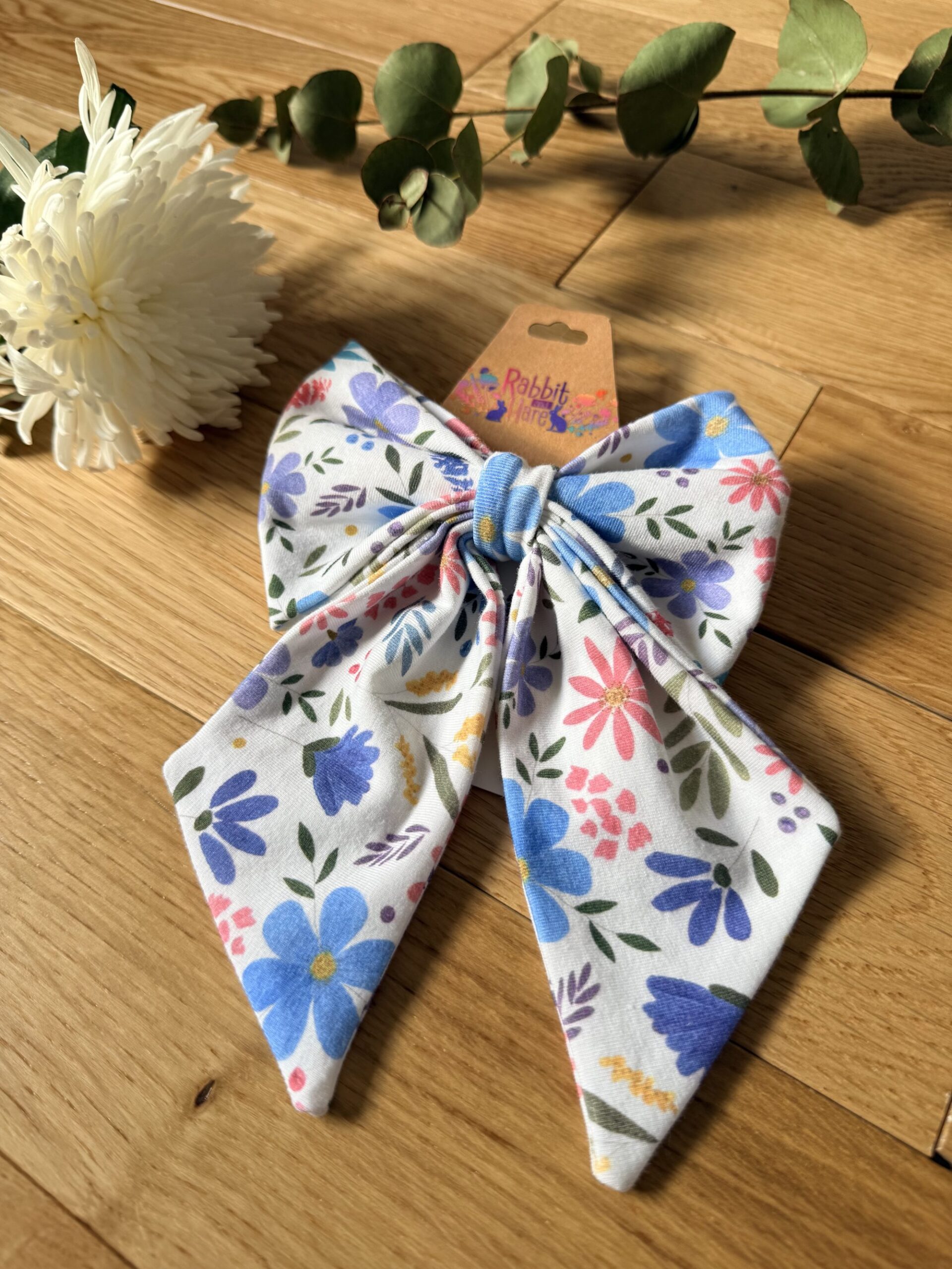 A classic large bow on a soft jersey hairband, made in the Meadow print. A small detail that ties a Meadow look together beautifully — or a gentle gift on its own.